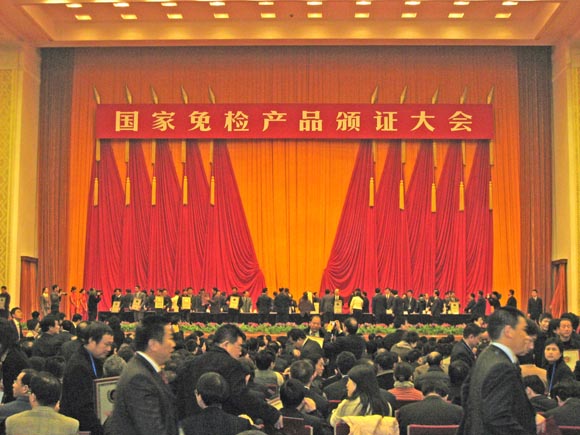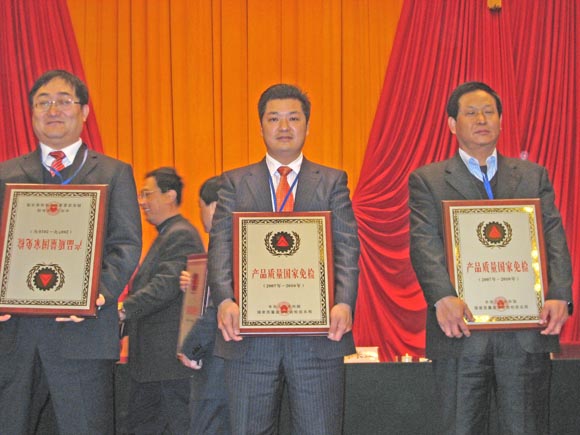 2007年12月14日,國家質(zhì)量監(jiān)督檢驗檢疫總局,在北京人民大會堂隆重舉行了“國家免檢產(chǎn)品頒布大會”國家總局李長江局長親自為我司頒獎。